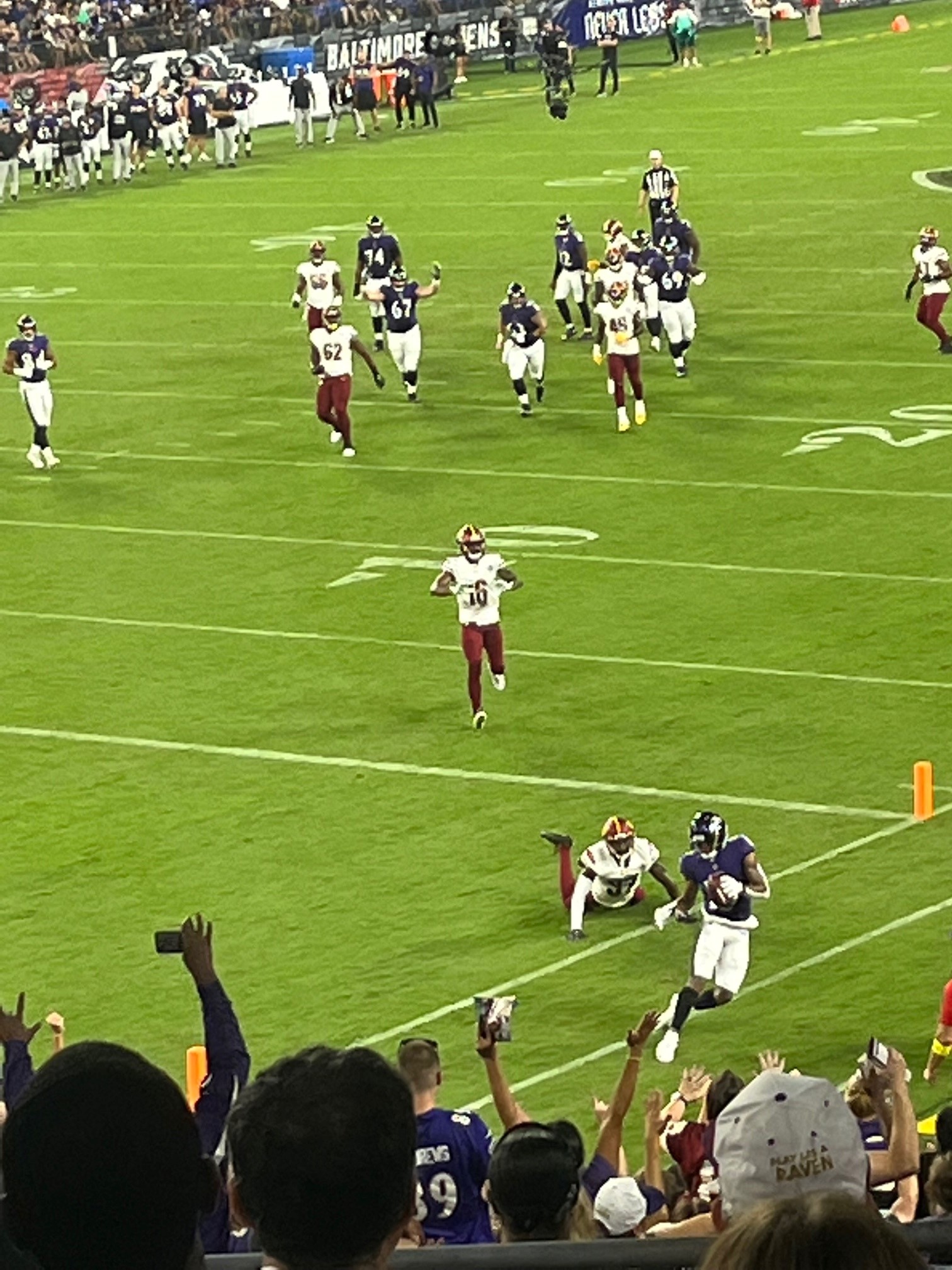 The Ravens continued their undefeated pre-season streak to now 23-0 since 2015. No, Lamar Jackson did not play last night, but he was on the sidelines, interviewed by an awesome kid and gave him his gold bling (see photo below).